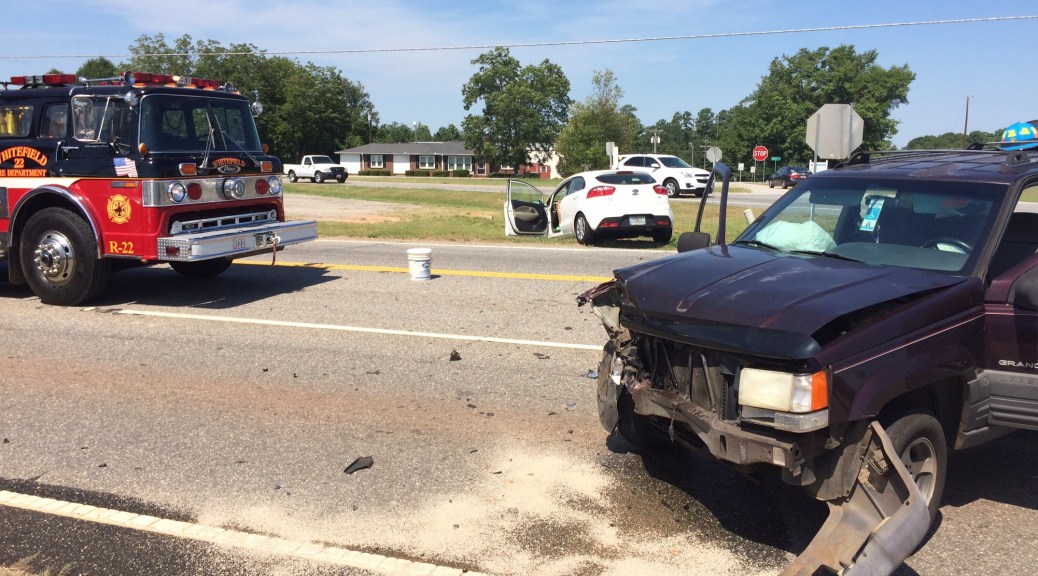 On August 2, Whitefield firefighters responded to a head-on traffic accident at the intersection of US 29 North and Old Williamston Rd. Three victims were transported to local hospitals for assessment of their injuries. US 29 North was closed for over an hour while emergency responders worked the scene and awaited the arrival of the SC Highway Patrol.