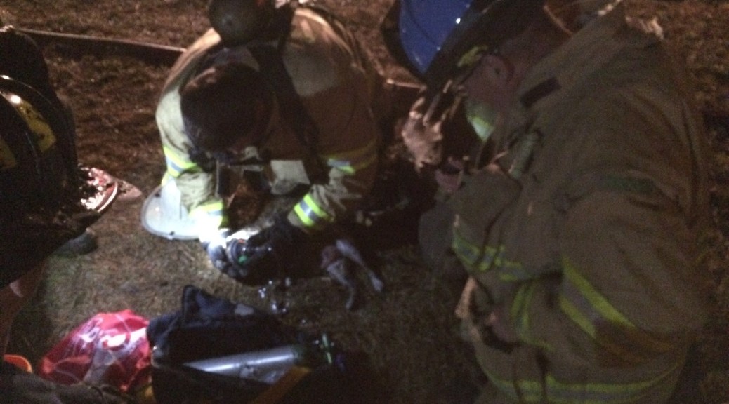 On November 13, Whitefield, West Pelzer and Piercetown firefighters responded to a house fire on Oldfield Circle in Williamston. Fire had extended through the roof upon arrival, but firefighters were able to contain the fire within a few minutes and rescue a cat that had become trapped inside a bedroom. Firefighters administer oxygen to the animal and reunited it with its owners, who then transported it to a veterinarian for observation.