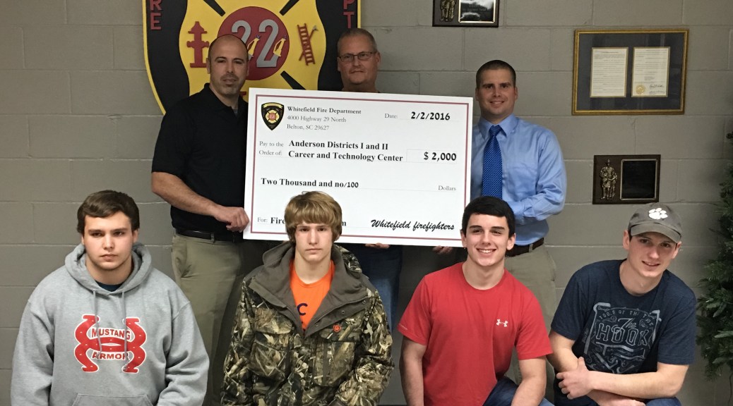 On February 2, the Whitefield Fire Department invested in the future of the area’s fire service by donating towards the completion of the Anderson Districts I and II Career and Technology Center Fire Training Facility. Over the past few years, the department has been the recipient of several nationally certified firefighters upon their completion of high school based firefighting instruction.