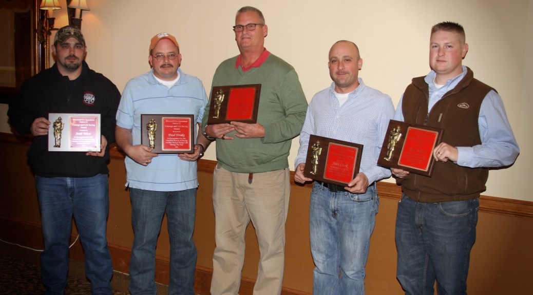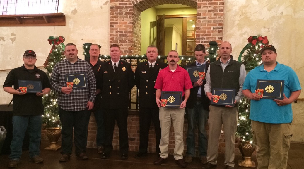 The Whitefield FD held its annual Christmas Dinner at Tucker’s Restaurant on December 20. Assistant Chief Ross Ables, Lieutenant Josh Clark, Safety Officer Bob Mosley, and firefighters Paul Drake and Josh West received Courage and Lifesaving Awards for the following incident on Willingham Road in March.