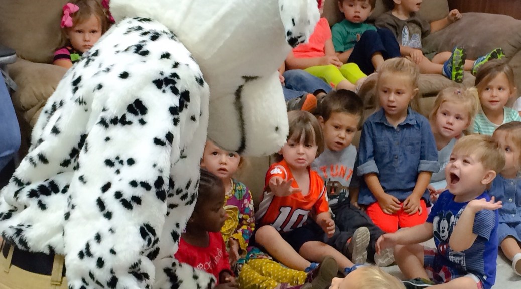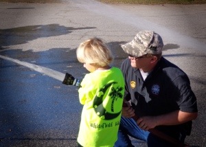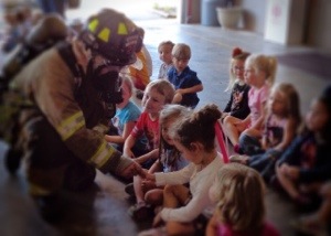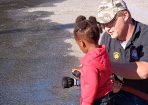 The Whitefield Fire Department had over 50 special visitors today. Preschoolers from the Whitefield Child Development Center visited the station to learn about fire safety. Firefighters dressed in full gear, taught the children how to stop, drop and roll, and let them “put out a fire” with the fire hose.