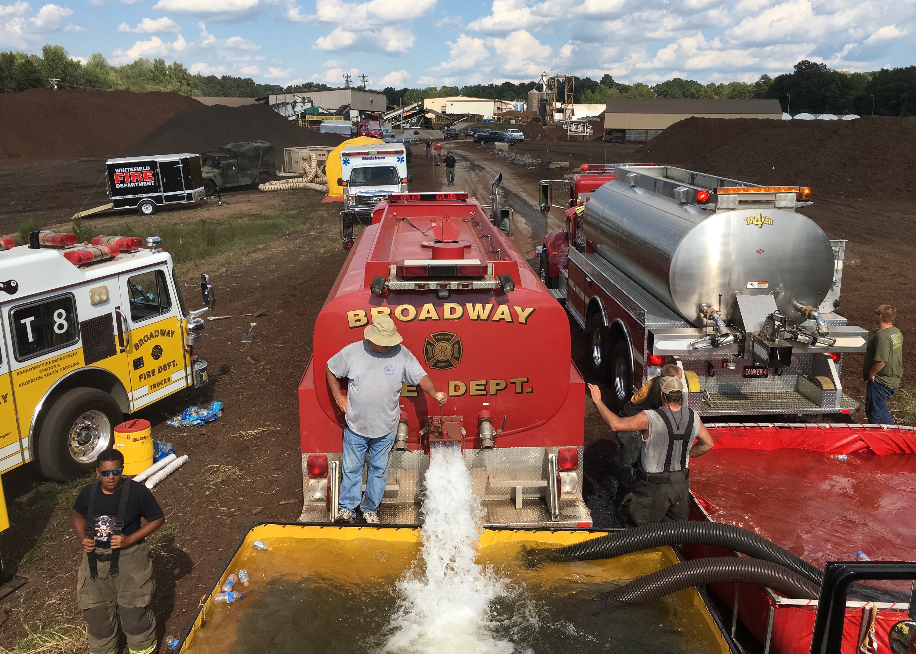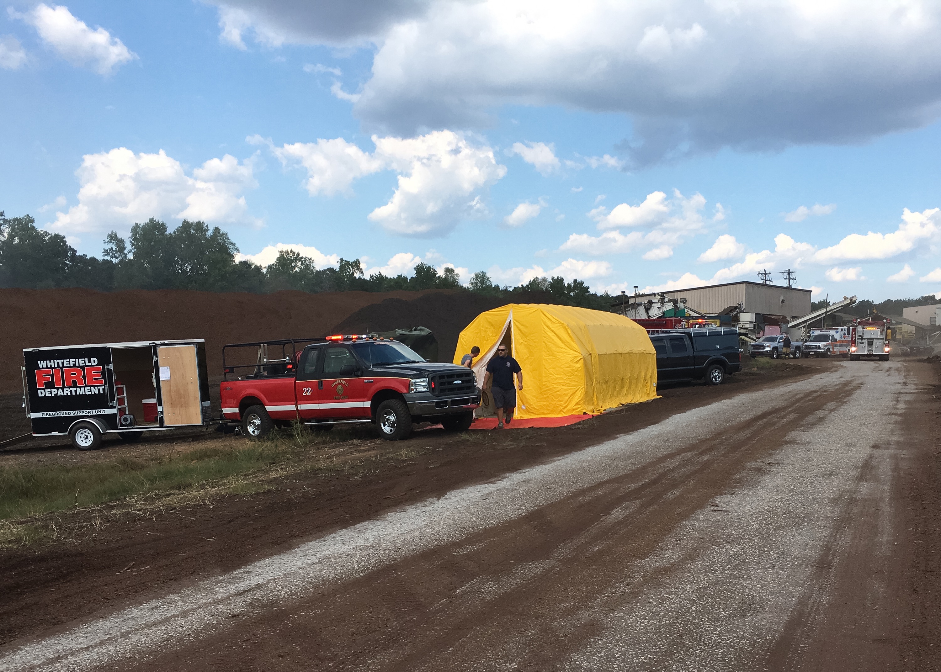 On September 25, Whitefield firefighters assisted Broadway Fire Department with a large mulch fire on Amity Rd. Tankers from Rock Springs, Starr, Broadway, Centerville, Center Rock, Cheddar, Piercetown, Whitefield and Ebenzer fire departments shuttled over 800,000 gallons of water from hydrants over a half mile away to help contain the fire to the mulch pile. Other units from Homeland Park, West Pelzer and Hopewell fire departments assisted with fill sites and handling other calls while firefighters fought the blaze. We appreciate the support of the American Red Cross, Anderson County Technical Services and MedShore for rehab and air conditioning for the duration of the fire.